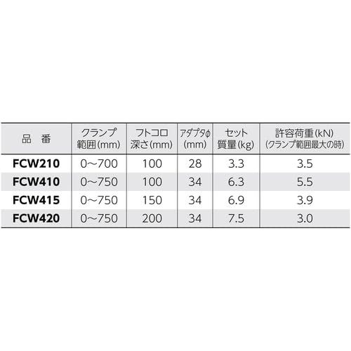 許容荷重(kN)(クランプ範囲750mm時):3.0
