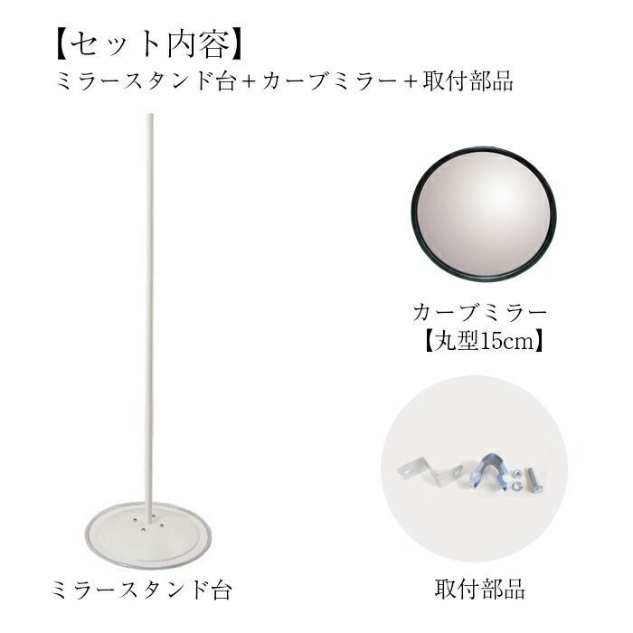 ガレージミラー 小型 家庭用 黒 白 丸型 147φ スチールスタンド台セット 高1230mm 取付金具付 ガラス製ミラー 駐車場 車庫 カーブミラー 防犯対策 簡単設置 yh 820
