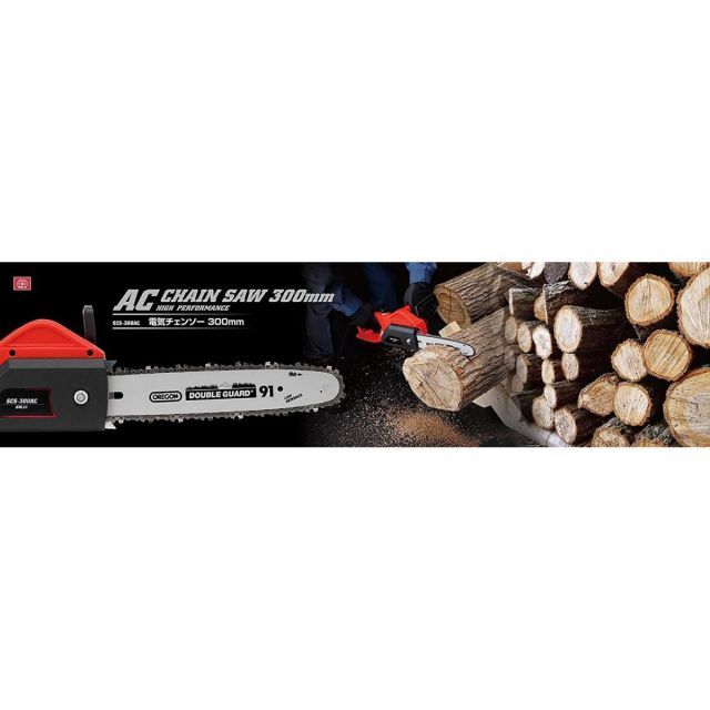 ●電源コード長さは余裕の5m、切味抜群オレゴン社製ソーチェーン、ガイドバー採用し有効切断長は300mmです。