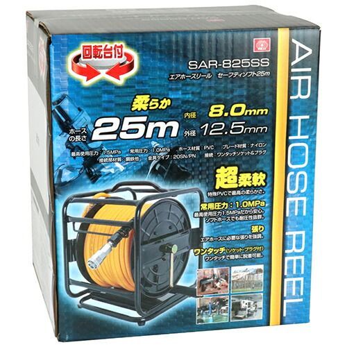 SK 11 超柔軟 エアーホースリール 25 m 8 mm 回転台付 エアホースリール ソフト エアーホース巻き取り機 エアリール エアーリール 軽量 丈夫