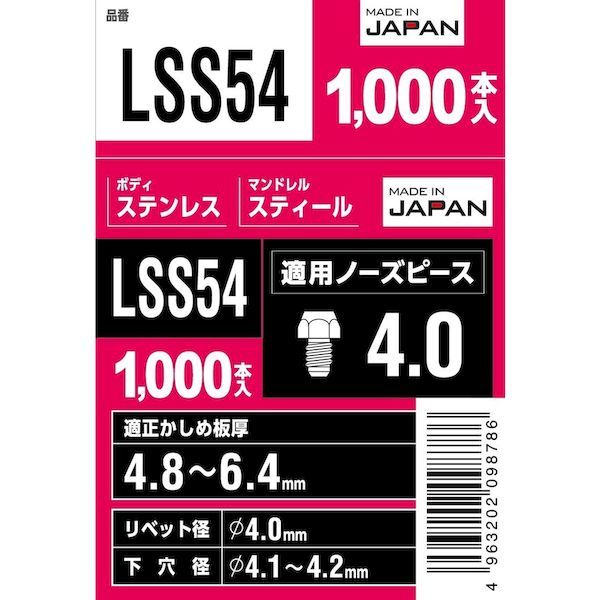 7営業日以内発送 ロブテックス LSS 54 ブラインドリベット 1000本入 販売不可