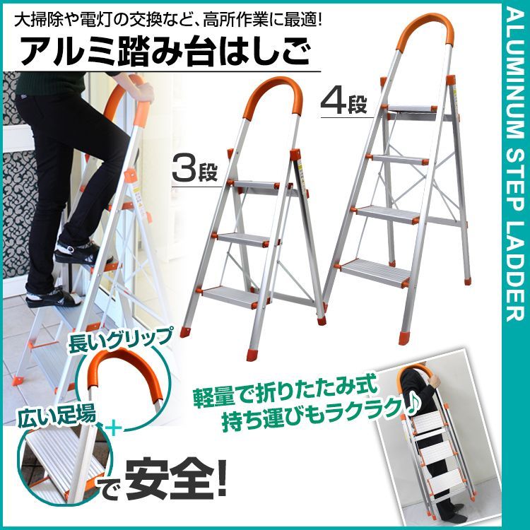 脚立 3段 アルミ 踏み台 折りたたみ おしゃれ 軽量 折りたたみ脚立 持ち手付き ステップ台 ステップラダー はしご 梯子 ステップ 大掃除 洗車台 A 19 D 3 OR