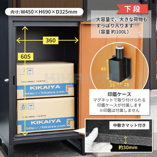 宅配ボックス ポスト一体型 2段 大容量 大型 置き配ボックス 一戸建て用 オーク ウォールナット 簡単設置 鍵付 盗難防止 KIKAIYA →