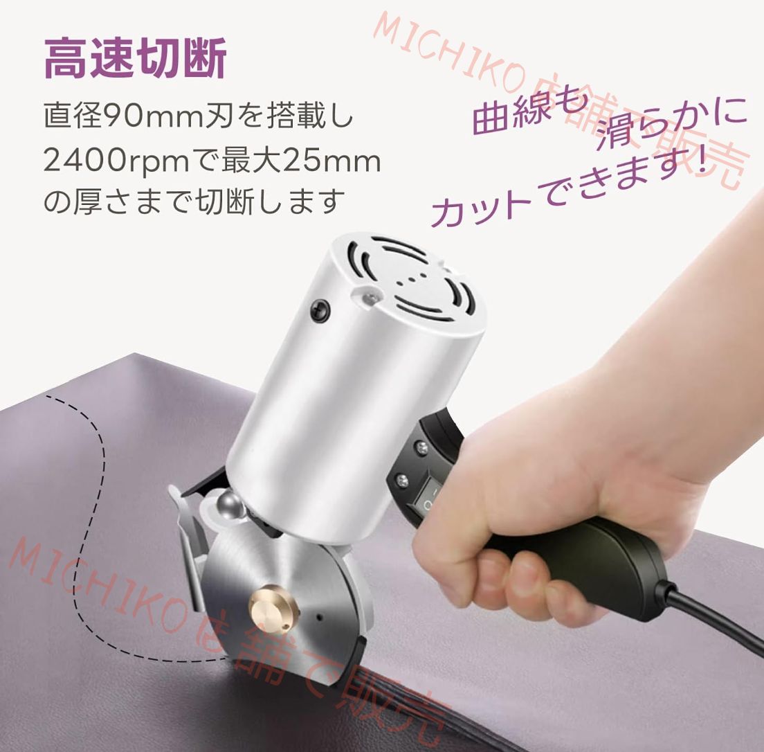 【高速切断】当社の電動布裁断機は直径90mm刃を搭載し、2400rpmで最大25mmの厚さまで切断します。 裁断は速く、きれいで、乱れることなくスムーズです。 • 【高品質な電動カッター】当社の電動布裁断機は、布地、織物、紙、革、ゴム、カーペットなどの素材を何層にも切断でき、靴、帽子、ネクタイ、シルク傘などの商業用および工業用に最適です。 段ボールのカットにはお勧めできません! • 【お手入れ簡単】研ぎ石内蔵、ワンタッチ自動研ぎ。 ヒント:使用後、刃に残った布屑を掃除してください。布屑が長時間蓄積して刃が詰まるのを防ぐためです。 • 【強力な純銅モーター】当社の電動カッターは純銅モーターを内蔵し、十分で安定したパワー、より効率的な切断作業。 • 【安定したベースデザイン】底部に3つのプーリーを備えた重いベースプレートは、切断中の傾きや滑り落ちを防止し、操作をより安全で便利にします。 › もっと見る