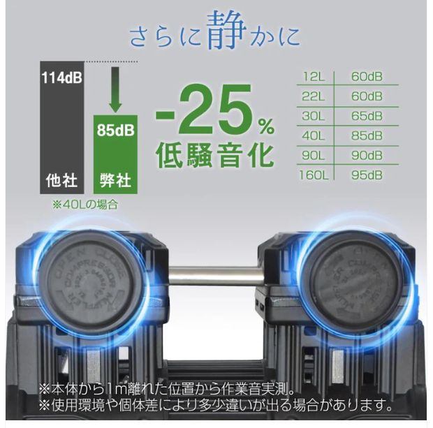 小型・軽量・低騒音!優れた排熱性能で空気充填スピードが速い。