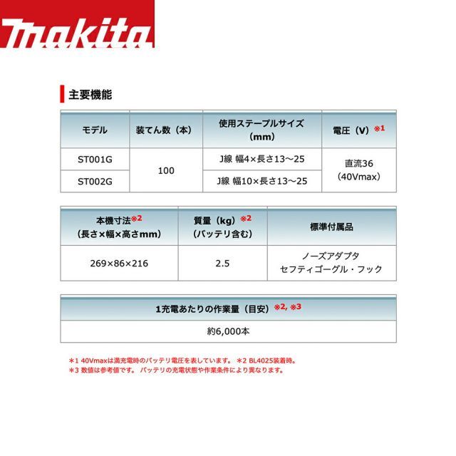 マキタ 40 Vmax充電式タッカ ステープル幅J線10 mm バッテリ 充電器 ケースセット品
