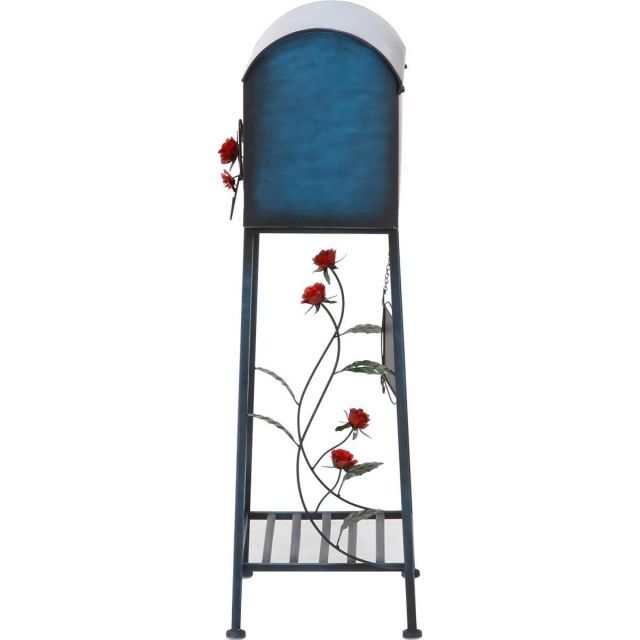 不二貿易 郵便ポスト メールボックス 郵便受け ポスト ローズ ブルー アンティーク風 棚付き 黒板付き 横型 スチール 96760