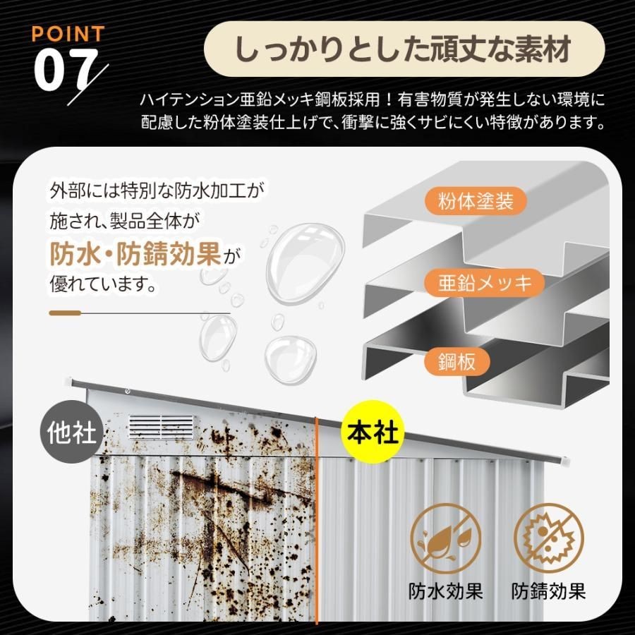 床材補強フレーム付き 物置 屋外 倉庫 大型 スチール 防さび 防水 戸外収納庫 ドア ガーデニング 庭