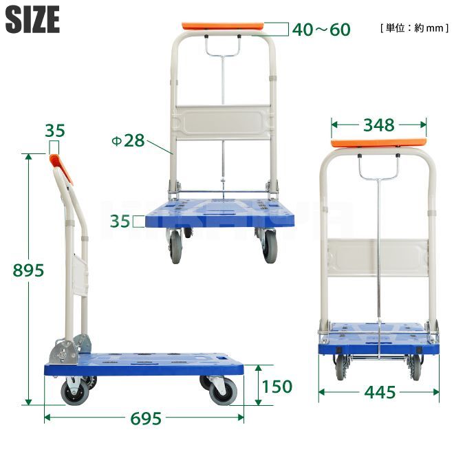 「折りたたみ 静音台車 300kg ハンドブレーキ付き」(FD300-HB)
