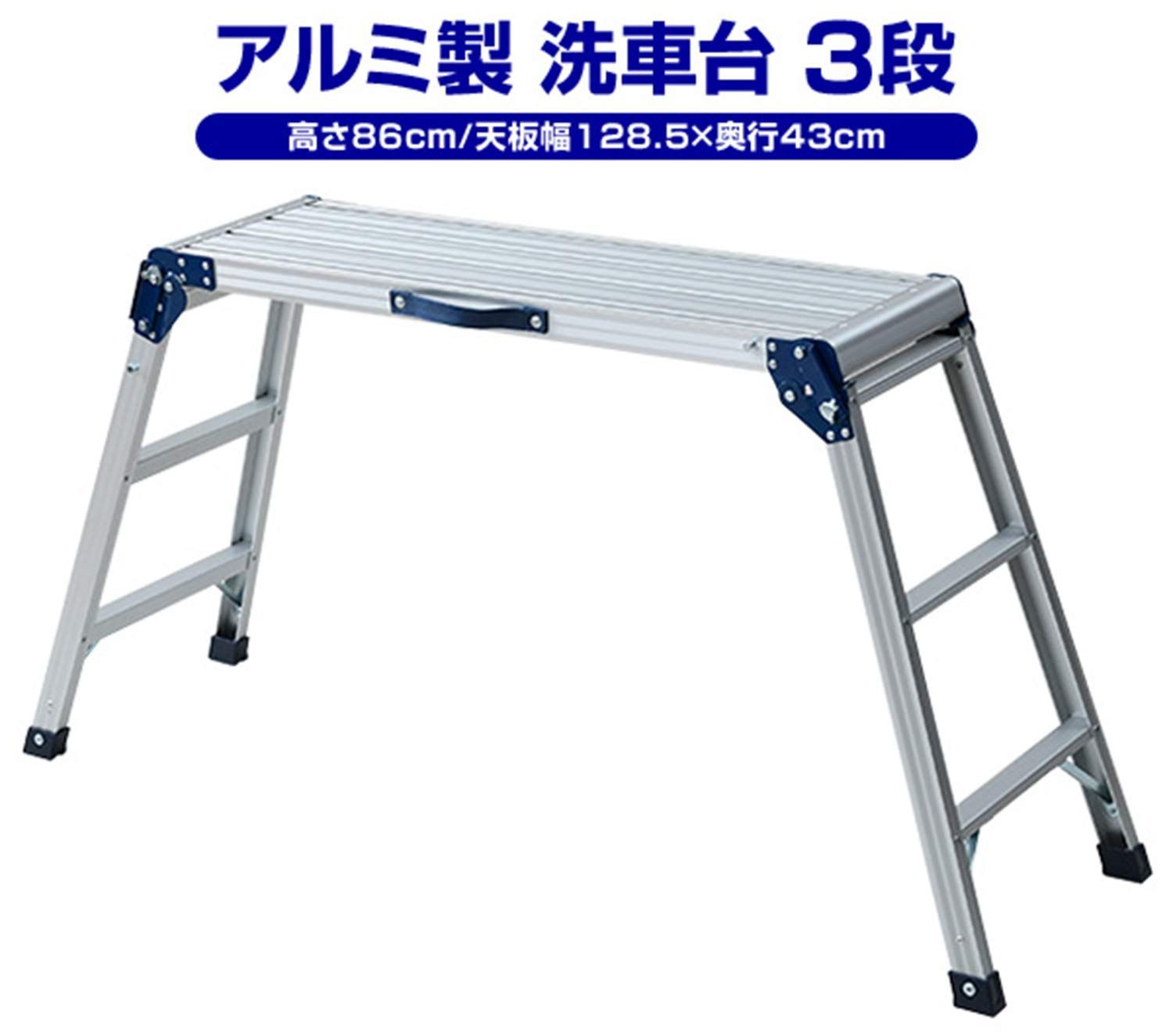 耐荷重100 kg 幅182×奥行62.5×高さ86 cm 洗車台 天板幅128.5 脚立 アルミ製踏み台3段 KA-EW 100 H 山善