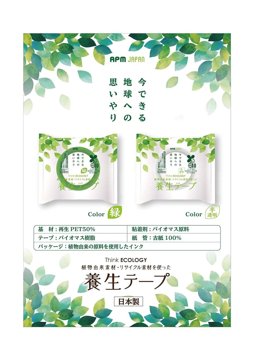 箱売り APMジャパン Think ECOLOGY 環境にやさしい養生テープ 50 mm 25m 緑 セット