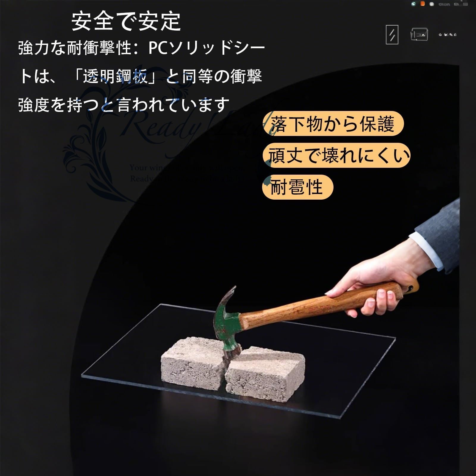 【高強度の保護】ポリカーボネートパネルは丈夫で壊れにくく、砂利や雹の衝撃にも耐えます。 透明で耐候性があります。 -40℃~120℃の温度範囲で優れた性能を維持します。 さまざまな温度変化や気候の変化に耐えることができます。砂利や雹の衝撃に耐える強力な素材です。