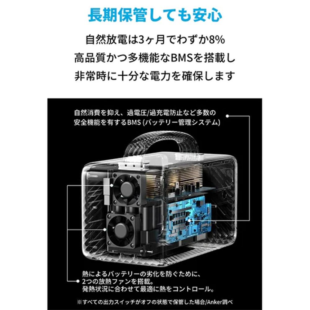 非常時用に長期保管した場合でもバッテリーの自然消費を少なく抑える仕組みを搭載