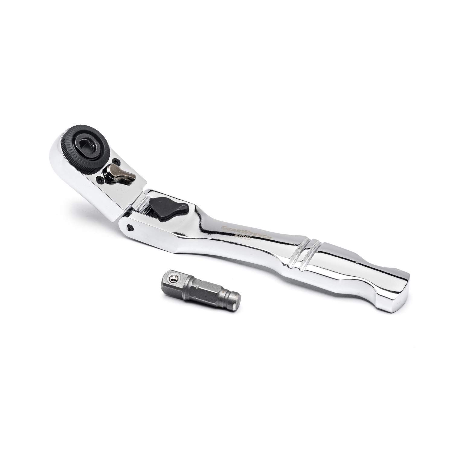 1/4インチdr.ラチェットアダプターを取り外してラチェットからビットドライバーに変換。9ポジションロックフレックスヘッドで最大限のアクセス。フルポリッシュクロームハンドル。スリムラインヘッド設計