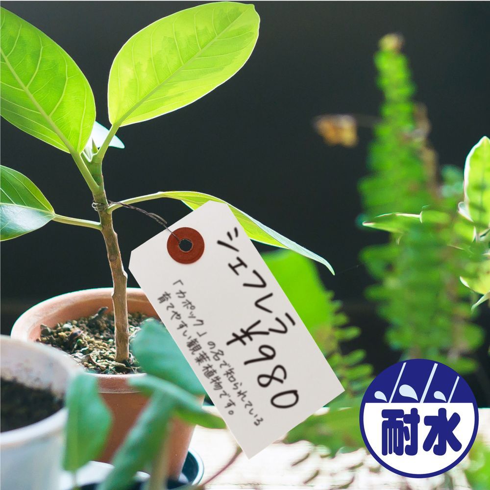 針金が付いた耐水紙を使用した荷札です。