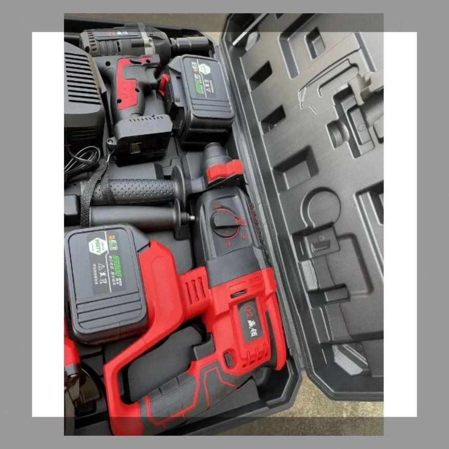 電動工具4点セット 研磨機 ハンマドリル インパクトレンチ ドリルドライバー 4つのバッテリ 充電器付き 2