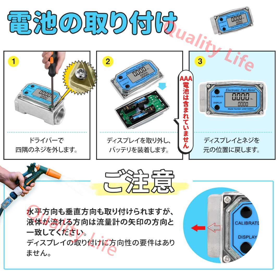 ? 「明瞭な読取&使いやすい」 LCDディスプレイで瞬間流量及び累積流量同時に表示され、より直感的に読み取れます。詳しい操作手順図が添付されている日本語取扱説明書付き、機械操作が苦手な人でも簡単に使用できます。ご注意:LCDディスプレイは防水ではありません。