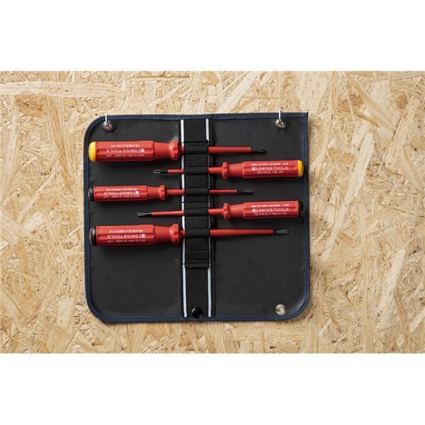 PB SWISS TOOLS ピービースイスツールズ 5本組 スイスクラシック スリムハンドルタイプ 絶縁ドライバーセット マイナス プラス ロールケース付 5542.SUSLGY