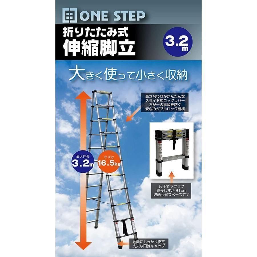 脚立 アルミ 11段 3.2 m 伸縮 折りたたみ 踏み台 伸縮脚立35 はしご 梯子 スライド式 安全ロック 耐荷重100 kg