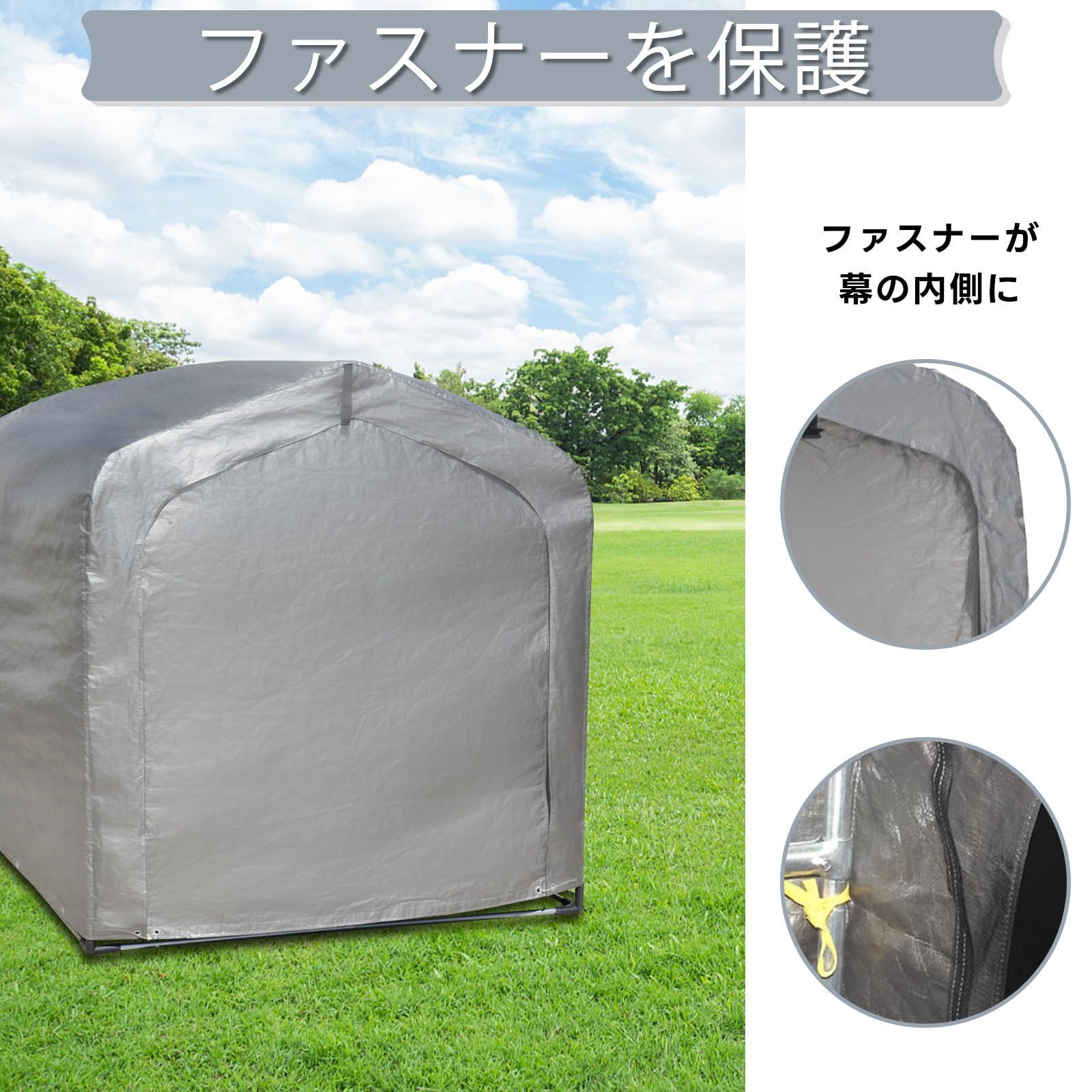 ORCHID サイクルハウス 3台用 高耐久 165 x 157 222 cm 自転車置き場 バイク倉庫 バイクガレージ 倉庫 小屋 ハウス 車庫 ポート カバー 収納 前幕付き ファスナー付き