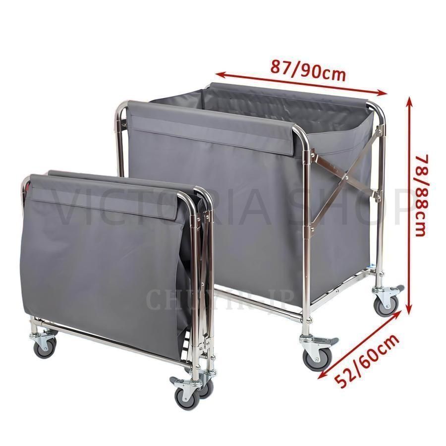 【折りたたみ式トロリー】ローリングランドリーカートのステンレススチールフレームは折りたたみ式で、使用しないときに最適な保管が可能で。リネンランドリートロリーは、収納スペースを効果的に節約します。設置が簡単で、耐荷重は200KGです