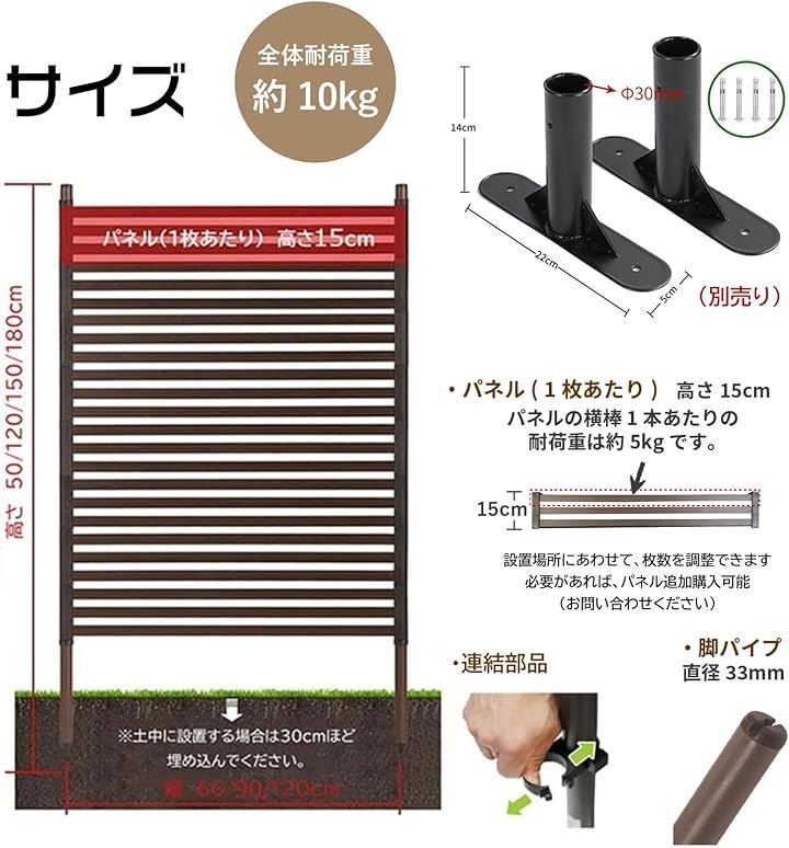 「商品仕様」目隠しフェンス本体サイズ:幅60/90/120cmx高さ50/120/150/180cm 1セット入。