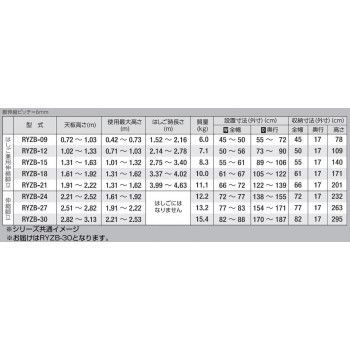 サイズ天板高さ:2.82〜3.13m、使用最大高さ:2.21〜2.53m、設置寸法(外寸):全幅82〜88×奥行170〜187cm、収納寸法(外寸):全幅82×奥行17×高さ295cm個装サイズ:82×17×295cm