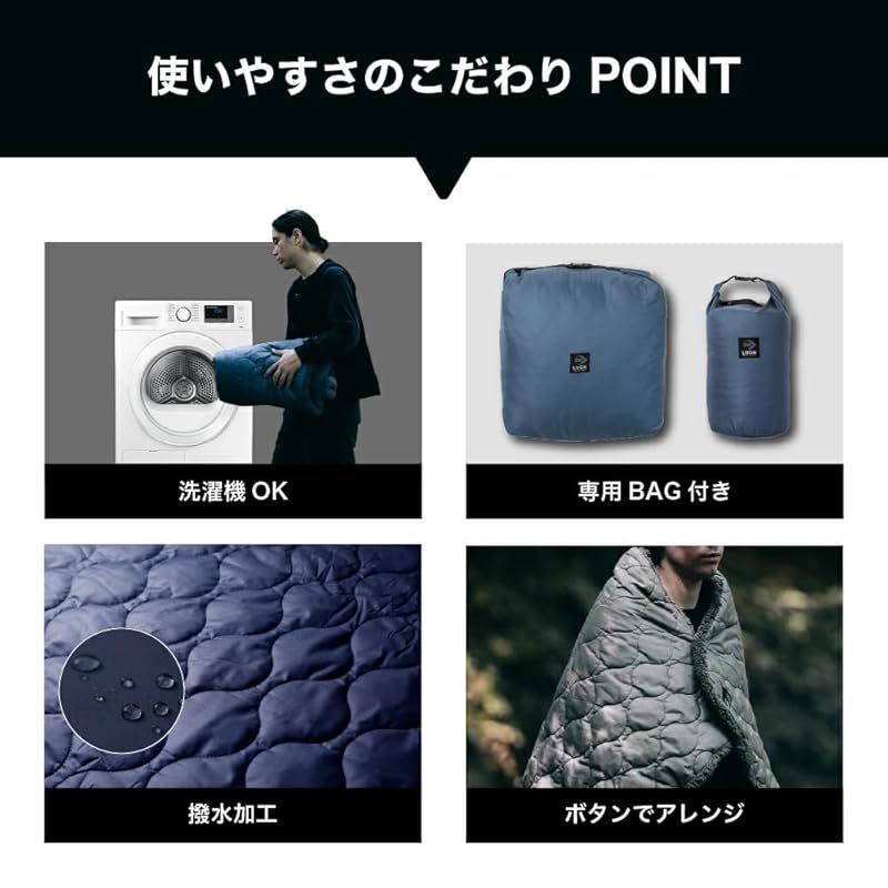 LUGH 魔法瓶ブランケット グラフェン 6層構造 電源不要 防寒 コンパクト キャンプ アウトドア 車中泊 ひざ掛け 洗濯 防災 節電 Lサイズ ミッドナイトブラック