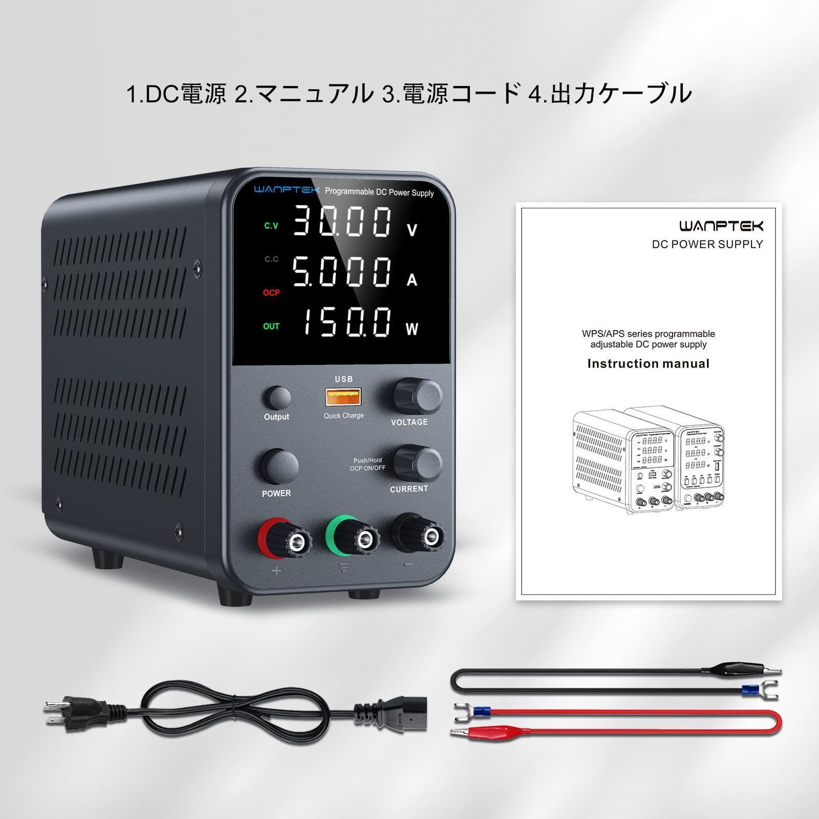 【付属品と】ご購入後、スイッチングDC電源WPS305H(30V/5A)*1、出力テストケーブル*1、電源コード(JP)*1、取扱説明書(日本語)*1.弊社製品はご購入日より1年間しており、商品到着後、人為的でない破損や欠陥があった場合、1ヶ月以内であれば無料で返品・交換が可能です。