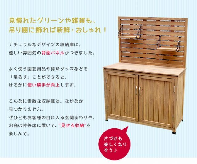 天然木 パネル付き収納庫100 倉庫 屋外 室内 ガーデン コンテナ ベランダ 木製 作業棚 吊り棚