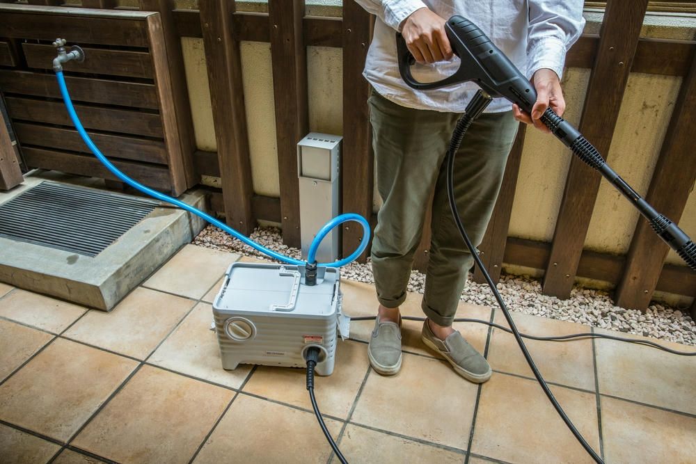 ●近くに水道(蛇口)がなくても使える、高圧洗浄機です。