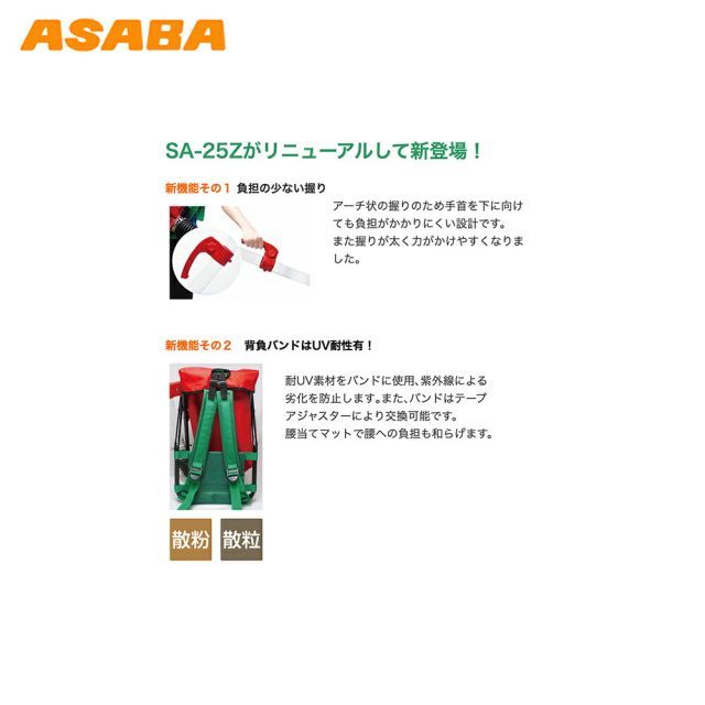 麻場 asaba 肥料散布器 SA-25 Z 1 容量25 L 散粒器 散布機 肥料 粒剤 スジマキ 全面散布 兼用