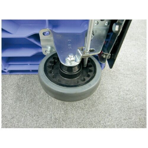 ●指で押せるくらい軽いストッパー●積載荷重/300kg●質量/16.9kg●サイズ/本体:W900×D600×H861(床面高203)mm、キャスター:Φ125mm●材質/ハンドル:スチール(粉体塗装)、デッキ:PP●キャスター/前輪:自在式、後輪/固定式●微音仕様●すべり止めゴム/床面に4箇所●コーナーバンパー/コーナー4箇所標準装備●取っ手穴/床面2箇所●特許取得済のスペシャルブレーキ付(プッシュブレーキ式)●床を汚しにくいノンマーキング配合の車輪●折りたたみ式