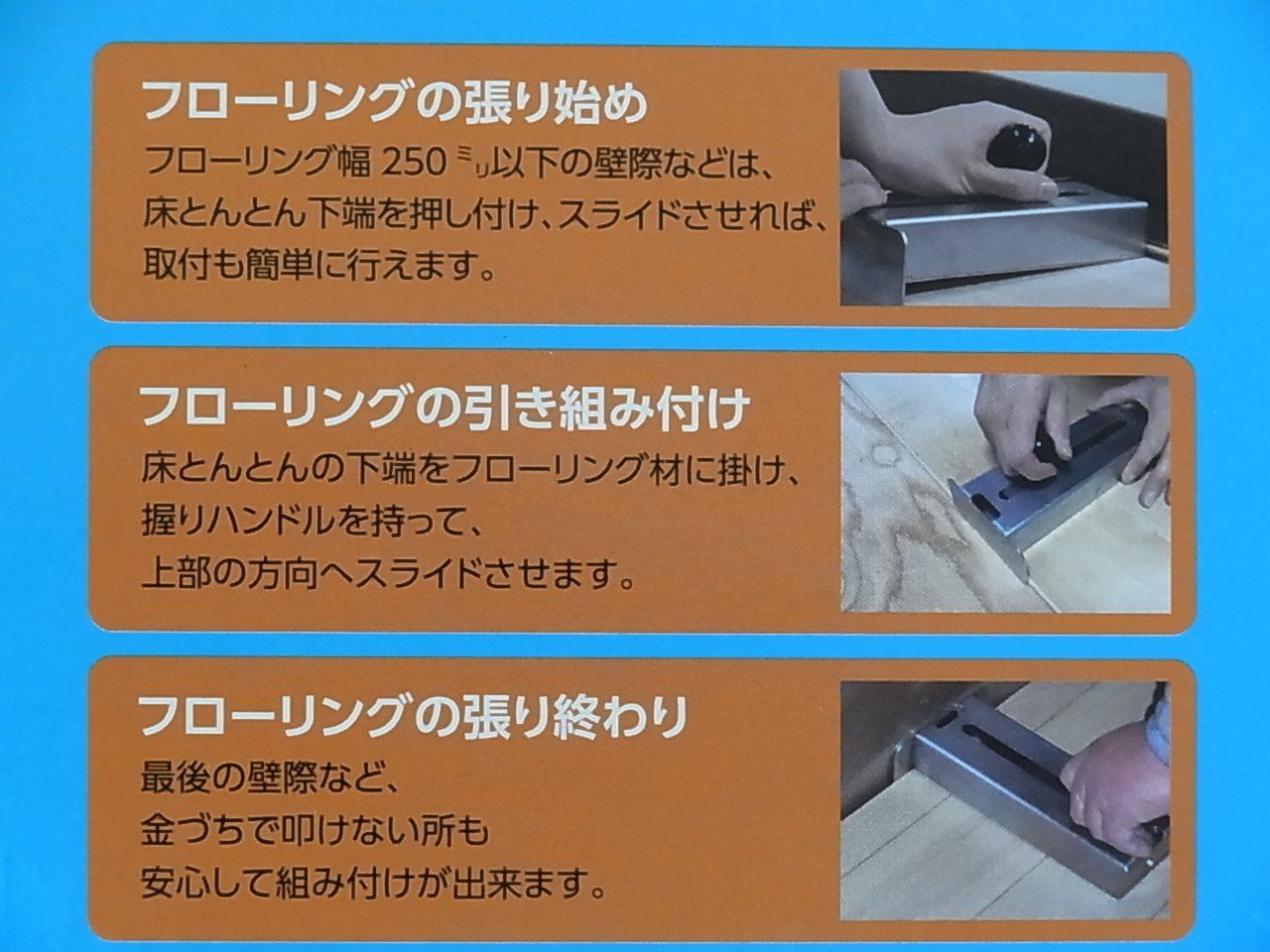 特長1:フローリング張り作業を短時間で容易にできるようにした画期的な便利道具。