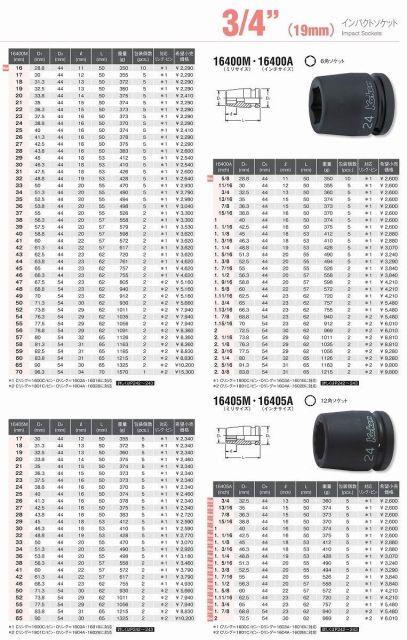 3/4(19mm)SQ.インパクト6角ソケット70mm16400M-70