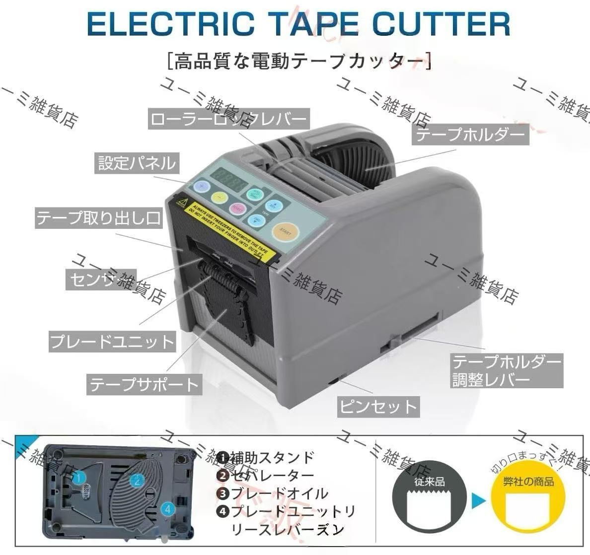3.【幅広いテープに対応】幅6~60mm、長さ5~999mmの2種類のテープを同時に扱うことが可能です。透明テープ、両面テープ、繊維テープ、耐熱テープ、細美テープなど、様々な種類の粘着テープに対応しております。