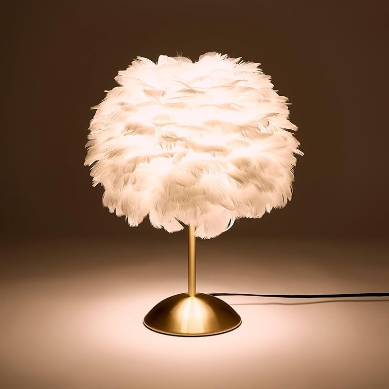 リアルフェザーを使用したテーブルランプです。ボリュームのあるフェザーのシェイドに明かりを点すとやわらかな光が広がります。ベッドサイドやシェルフに置いて間接照明としてお部屋を華やかに演出します。【注意事項】 白熱電球の使用:不可 電源種類・消費電力:AC100V 50Hz/60Hz LED対応:E26 806ルーメン 消費電力:15W 適応畳数:1.5 期間:12か月 原産国:中国
