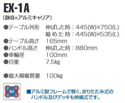 静音 アルミキャリア台車 最大積載量100 kg EX-1 A
