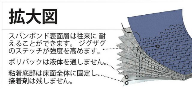 ・丈夫なスパンボンド表面層に頑丈なジグザグ縫いが施され、人の往来や軽車両だけでなく、重機通行にも耐えることができます。