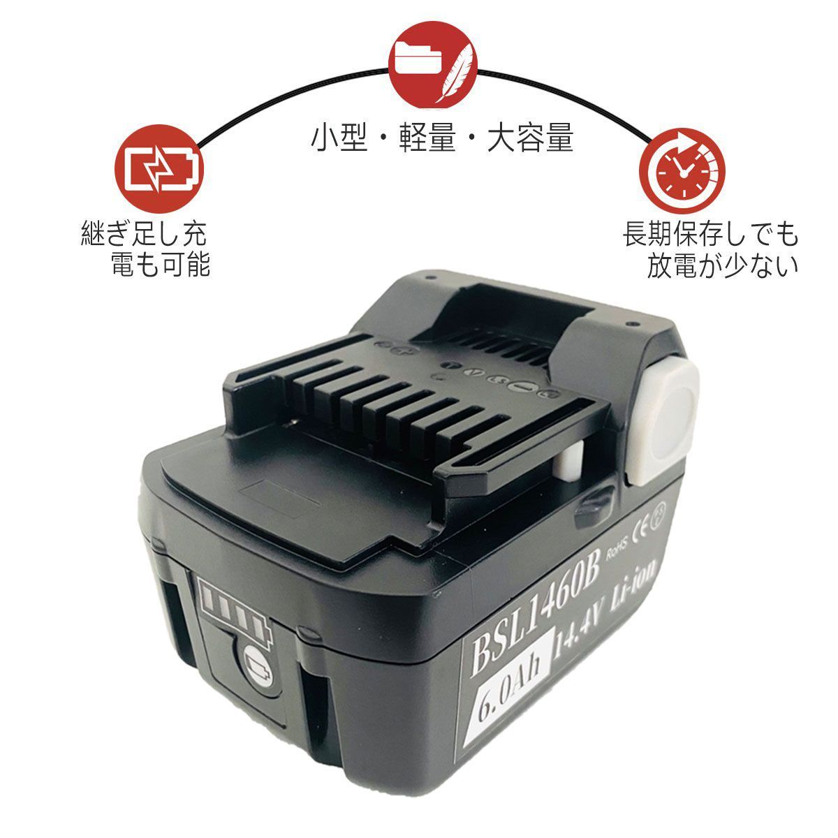 3ヶ月保証 HITACHI 14.4 V セット 大容量 6.0 Ah 互換 バッテリー 日立 HiKOKI ハイコーキ 電動工具 残量表示付き PSEマーク取得商品