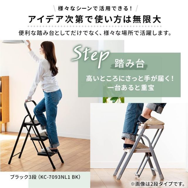 スタイル:3段◆商品名:アイリスプラザ(IRISPLAZA)折り畳みステップ3段KC-7093NL1ホワイト踏み台脚立軽量幅約41×奥行約73×高さ約95耐荷重150kg新生活