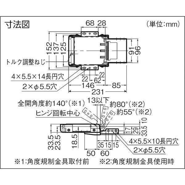 ●開き角度を55°または80°に規制できます。