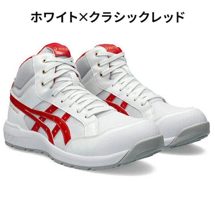 ホワイトXクラシックレッド 26.5 アシックス ワーキングシューズ ウィンジョブ CP 218 安全靴 作業靴 くつ クッション性 グリップ性 かっこいい おしゃれ