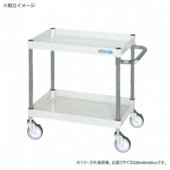 ボルトレスで組立簡単。棚板を逆さにするだけで、皿型・フラット型と組み替えることができます。安価で耐久性に優れるゴム車を採用しています。