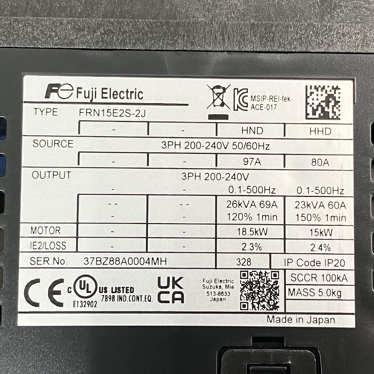 こちらは「未使用 富士電機 FRENIC-ACEシリーズ FRN15E2S-2J 高性能スタンダード形インバータ 」でございます。
