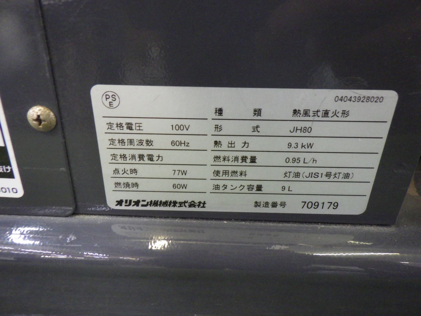 オリオン ジェットヒーター 80 HPS D 通電のみ 冬場 100 V 鈑金 自動車整備 品