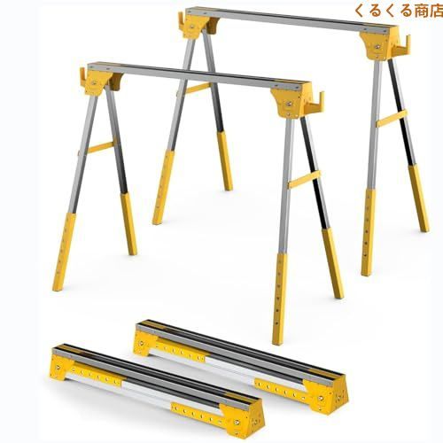 ソーホース 作業台 テーブル 木工作業台 2台1組 高さ調節6段階 ソーホースセット 2台入 折りたたみ 折り畳み DIY 木材