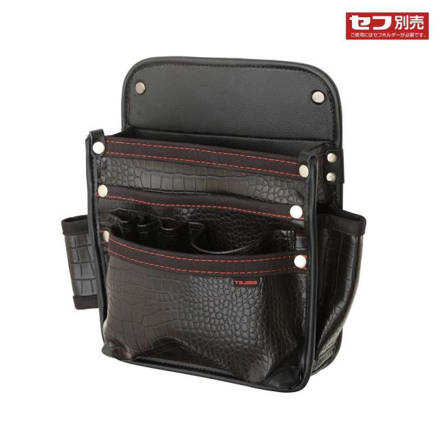 ●2つの丸型セフで着脱性アップ●※セフホルダーは別売となります。ご利用にはセフホルダーが必要になります●2つのセフで着脱性アップしたセフツインフック●高強度でしなやかな高耐久合成皮革●光沢と凹凸が独特の高級感と存在感を放つクロコ調●強度重視、大工仕様の腰袋●墨つぼやマーカー、釘打器を仕分ける専用ポケット付●擦ることの多い底部を耐摩耗性のあるターポリンで補強●腰周りの組み換えが簡単。ベルトに後から装着可能なセフ着脱式●使用用途:工具収納用