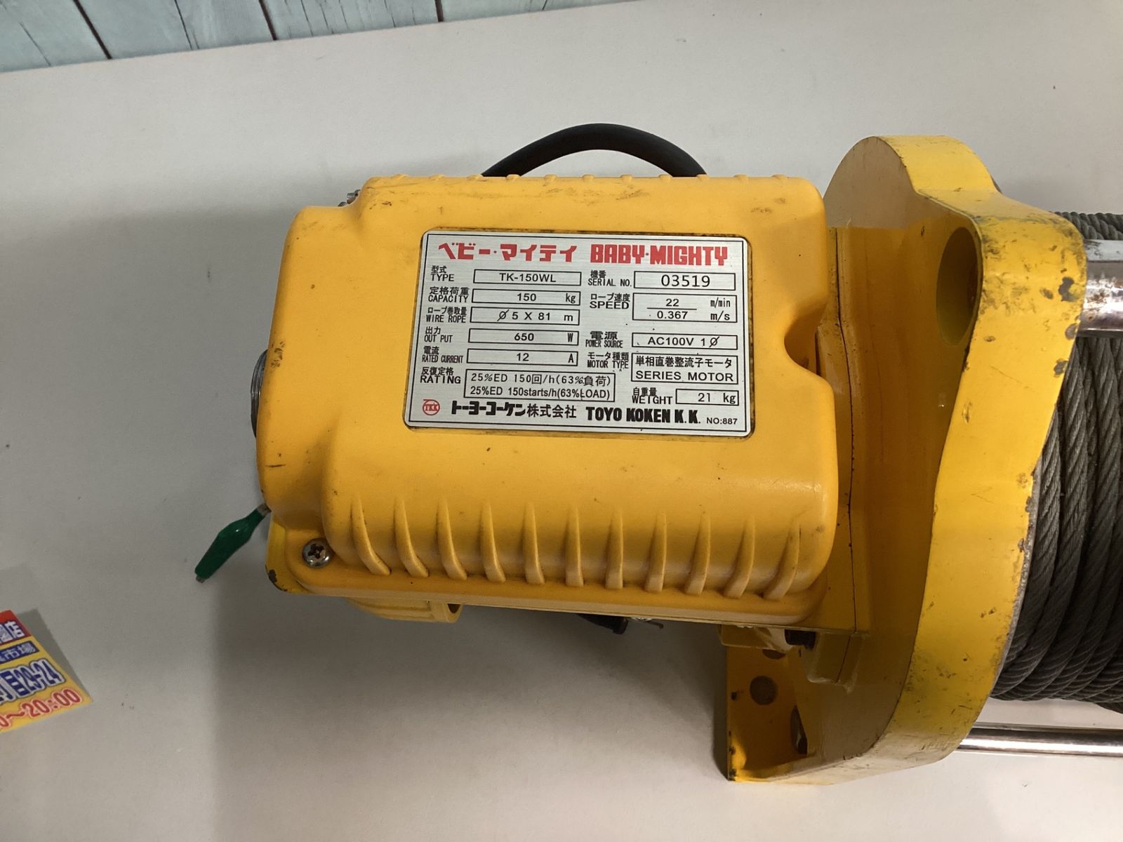 トーヨーコーケン TKK 定置型電動ウインチ TK-150 WL ベビーマイティ