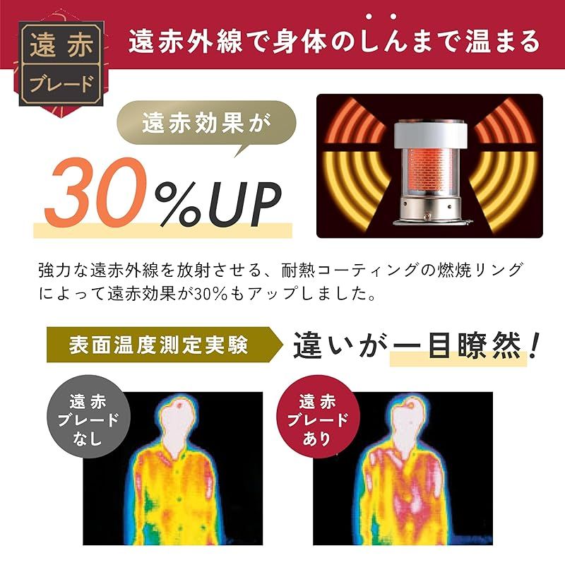 【遠赤外線で身体のしんまで温まる】強力な遠赤外線を放射させる、耐熱コーティングの燃焼リングによって遠赤効果が30%もアップしました。